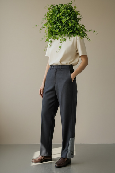 Grey trousers with tone-on-tone stripes with grey side panels and bottom made with a jacket sleeve in vintage fabric.