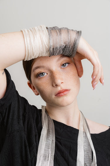 Metallic thread that weaves meshes, tangles, and braids.