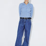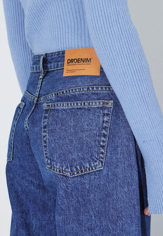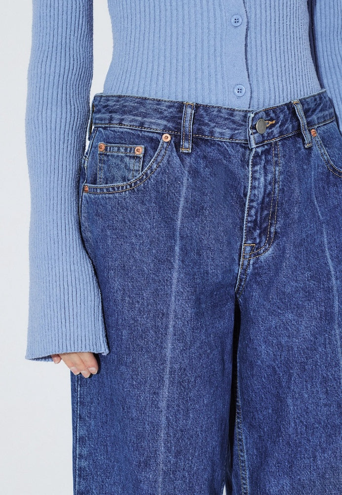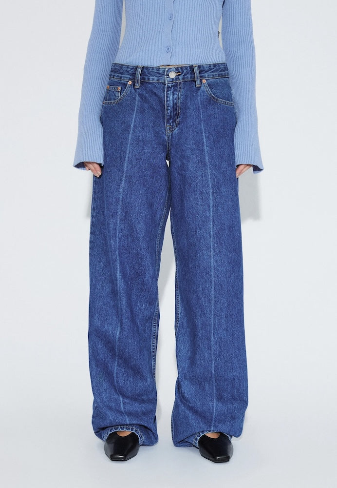 Relaxed fit jeans with a low waist and a wide straight leg slightly nipped in at the hem. Classic 5-pocket design with a zip fly. These jeans are crafted from a rigid, non-stretch denim fabric.