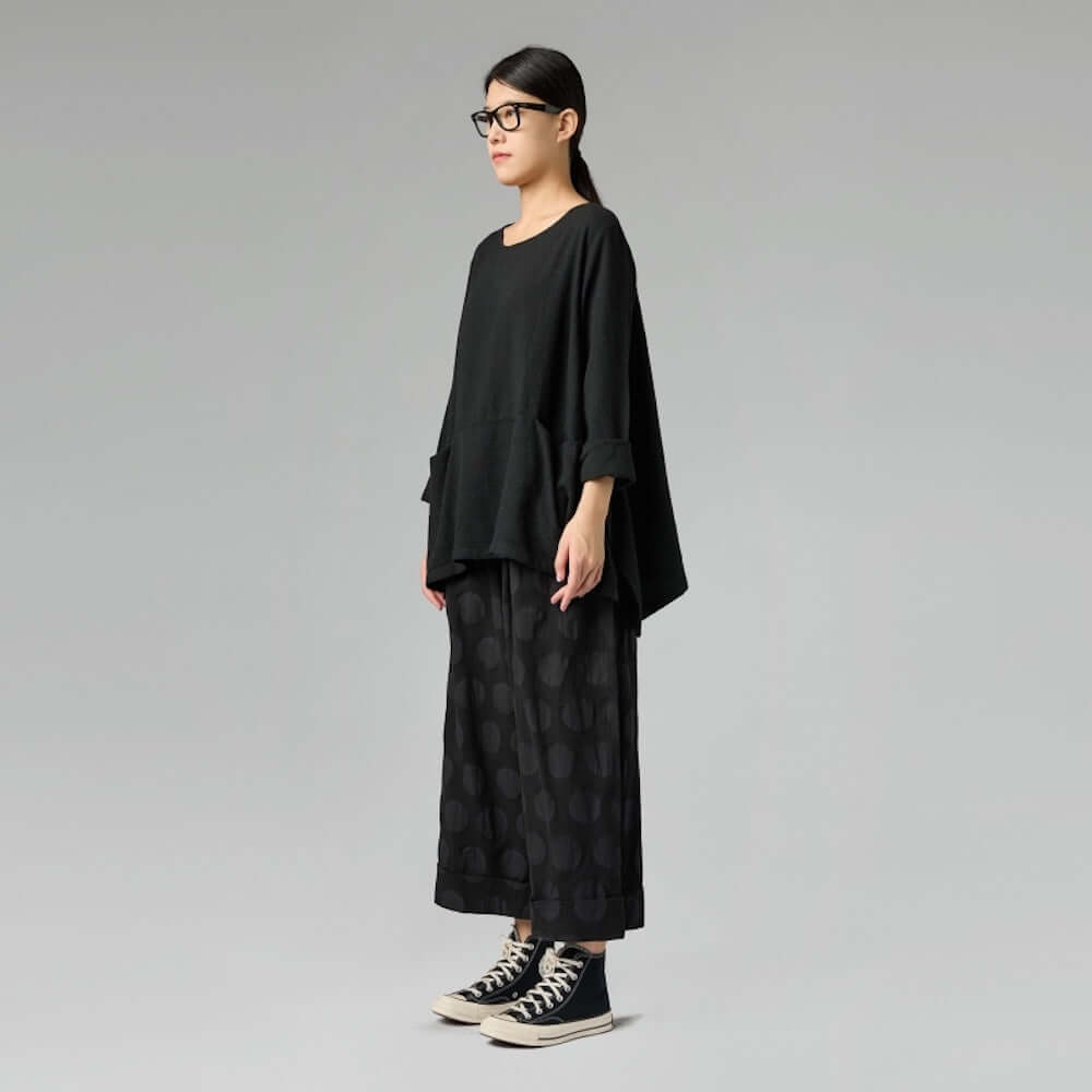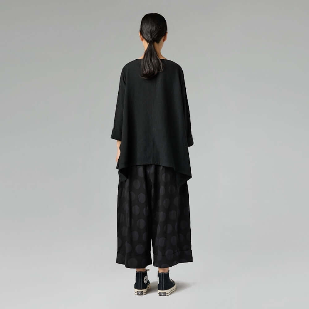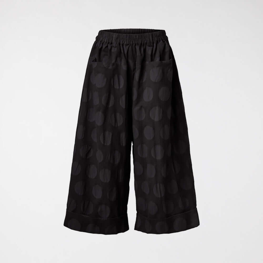 Cuffed trousers in polka-dot cotton. Elastic waistband with belt loops. Concealed front pockets. Relaxed fit.