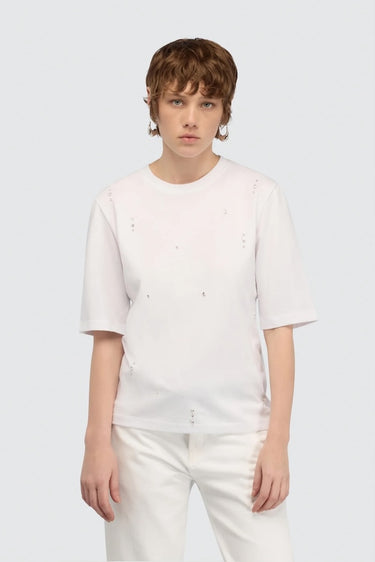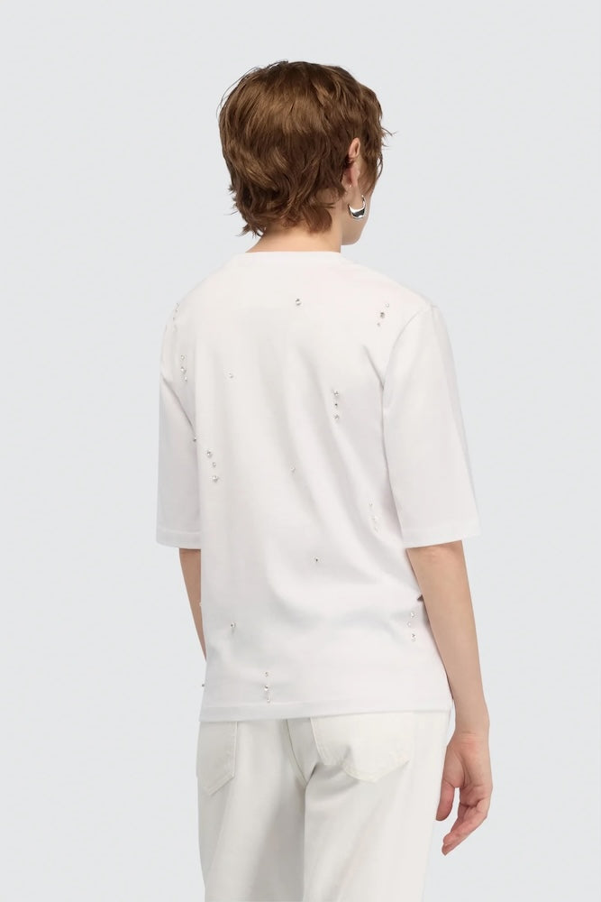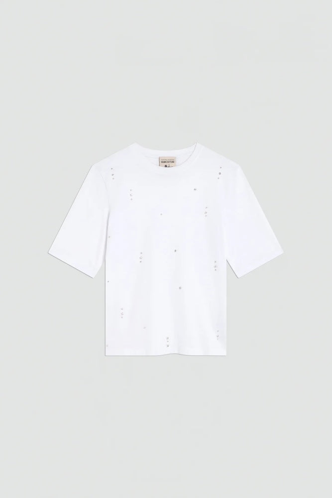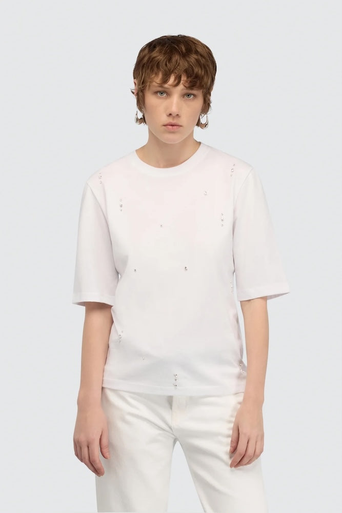 COTTON T-SHIRT EMBROIDERED WITH CRYSTAL-EFFECT FACETED RHINESTONE. REGULAR FIT.