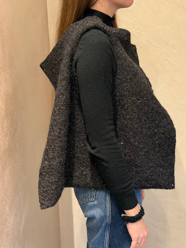 Black and glitter fabric bag.