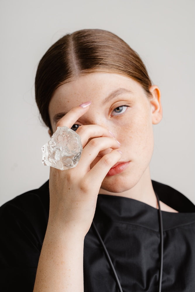 Adjustable metal ring with a resin shape.