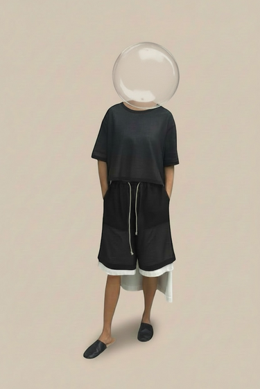 Short-sleeved t-shirt, featuring a double-layer fabric and double-length.