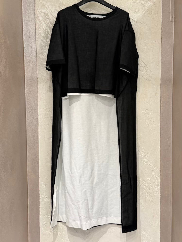 The t-shirt is cropped at the front and calf-length at the back.