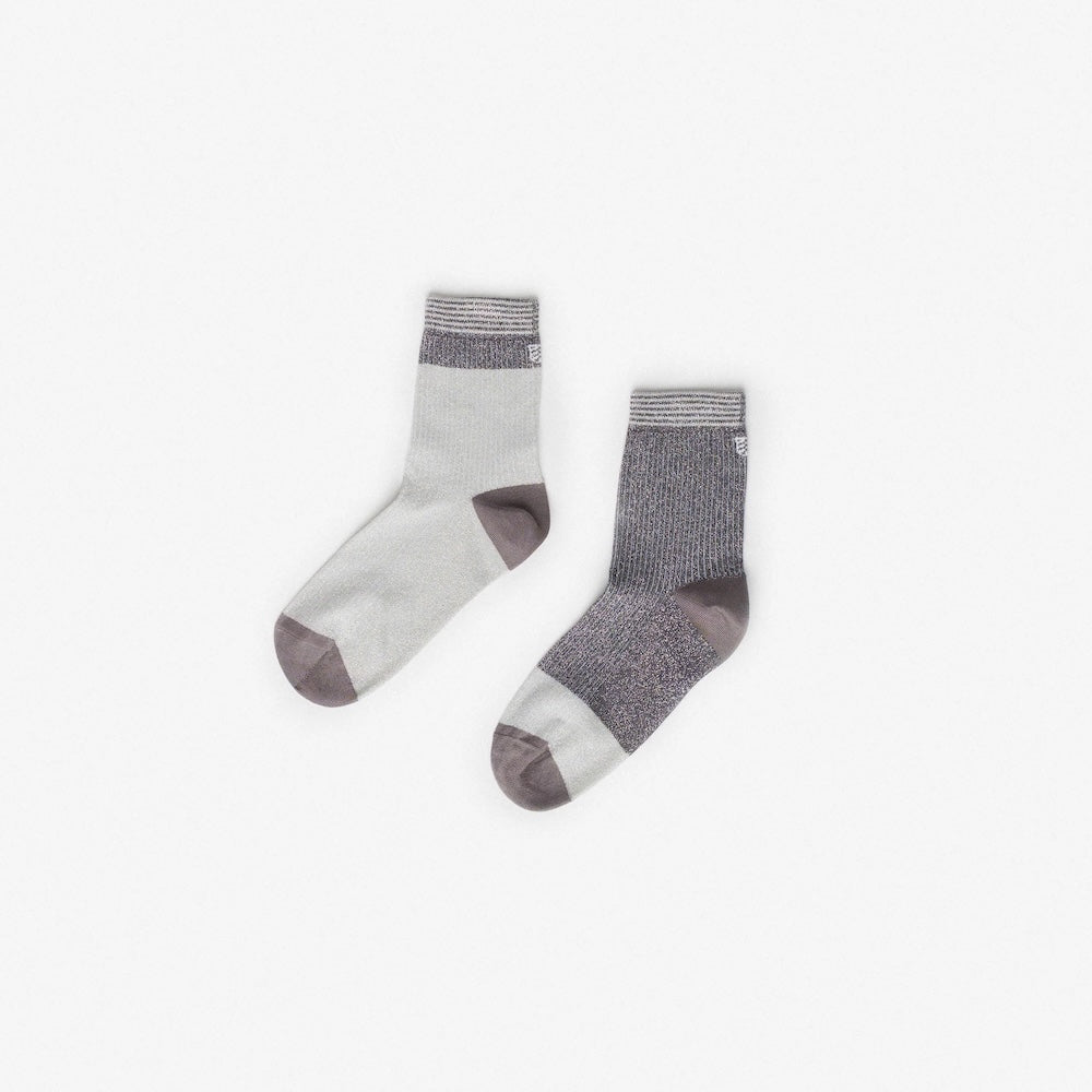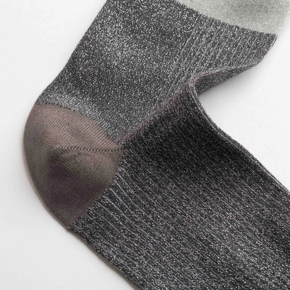 Ankle socks in cotton and Lurex with a silver base. Asymmetrical pattern with one sock in a lighter shade and the other in a darker tone. Made from long-fibre cotton blended with Lurex. Reinforced toe and heel and a flat-knit toe seam for enhanced comfort.