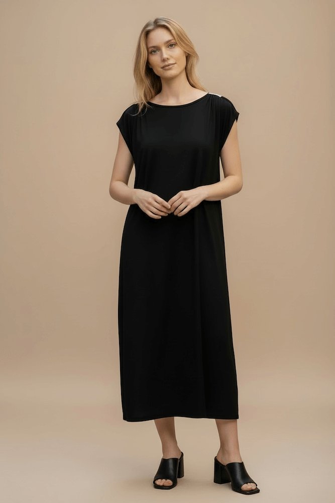 RIBBED COTTON DRESS. SHOULDER DETAILS. REGULAR FIT.