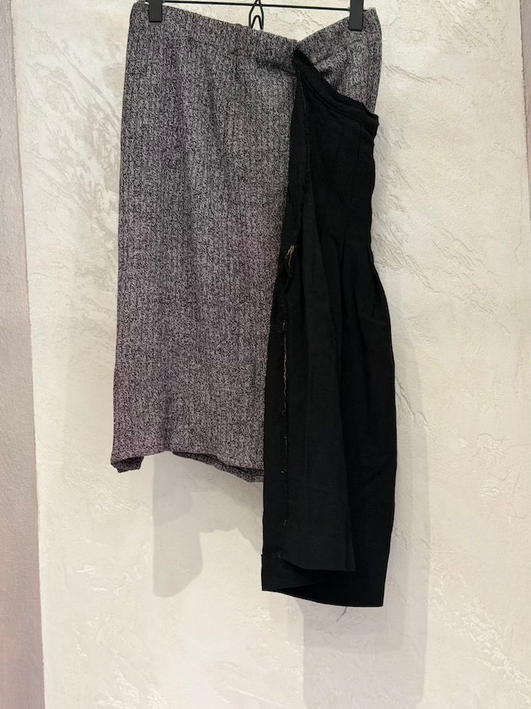 Salt-and-pepper gray knit skirt with black pleated half-skirt.