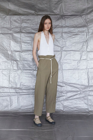 These feature upper belt loops and lower belt loops with a cream-colored cord.