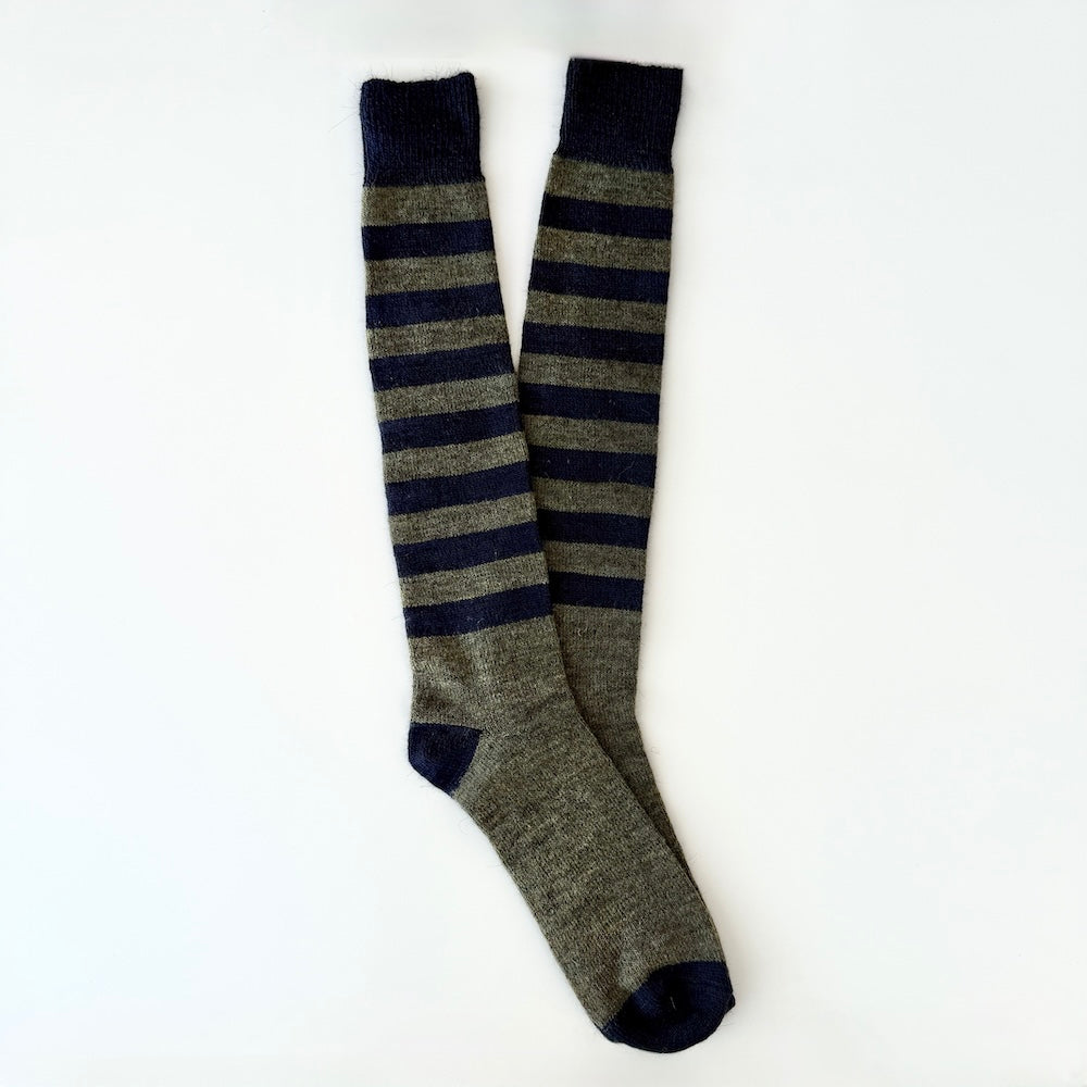 A new long sock style in wool and alpaca with the characteristic 1960s sailor stripe.