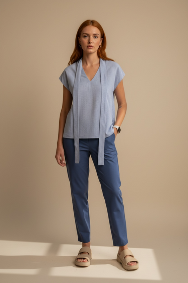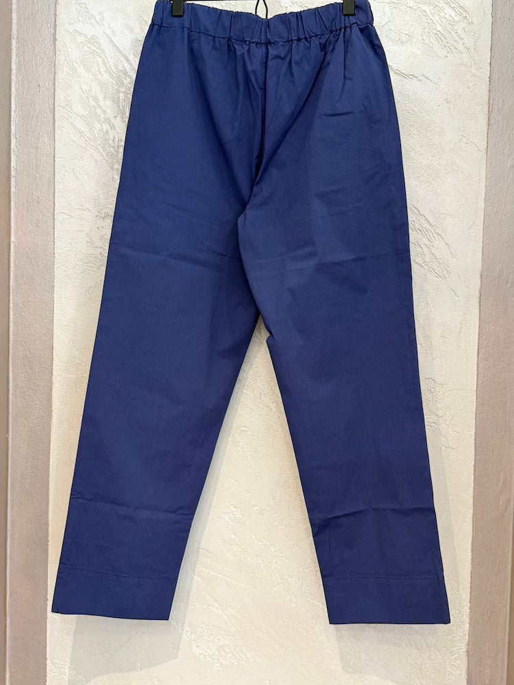 Royal blue trousers with an elastic waistband and cuffs.